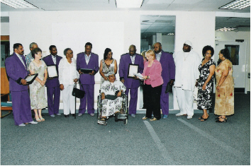 (L-R) Ron Tyson, Charlotte Brown, Willie Webb, (hidden), Terry Weeks, Mrs. Lucille Watkins,