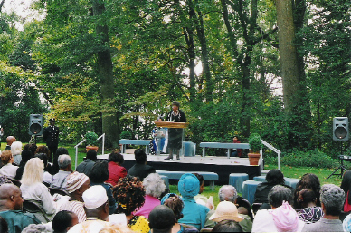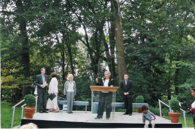 Mrs. Gay Hart Gaines, Regent, The Mount Vernon Ladies' Association greets the crowd.