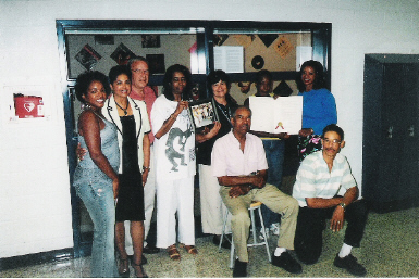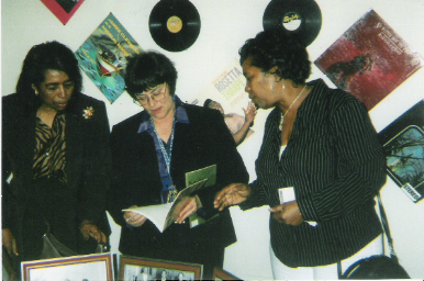 holding photo, Rima Vesilind, Principal, Charles Henry Quander, sitting, Pam Quander, holding